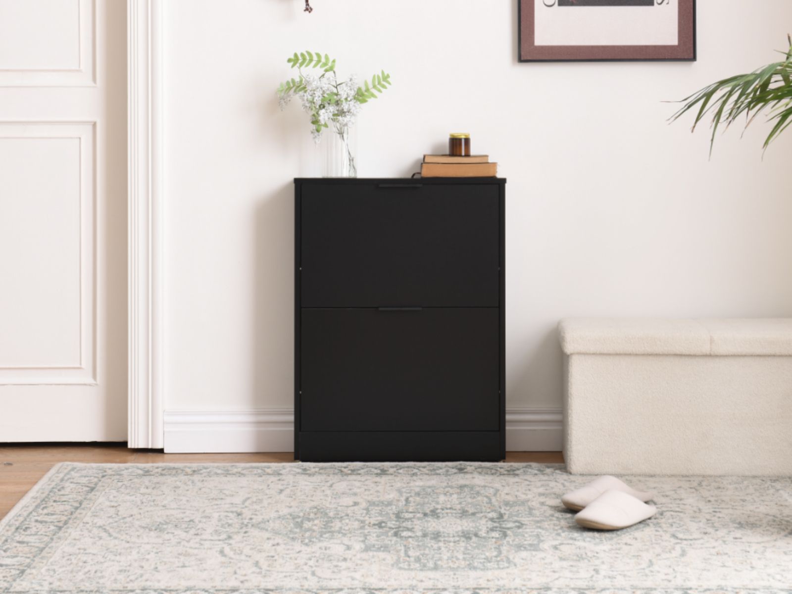 Ce meuble à chaussures moderne de ACAZA allie design épuré et fonctionnalité intelligente. Grâce à son format compact, il est parfait pour les petits espaces comme le hall d’entrée ou la chambre. Il trouve également sa place dans un salon plus spacieux. Avec ses deux abattants, il peut contenir jusqu’à 6 paires de chaussures, sans prendre de place au sol.